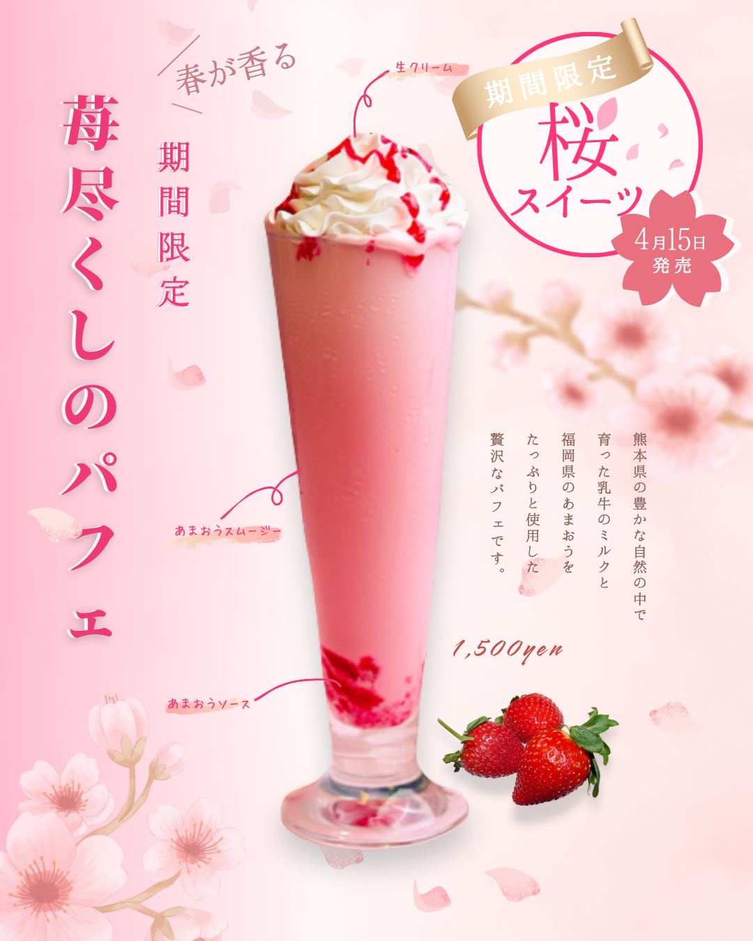・福岡限定で、あまおう苺を使用したドリンクの販売を開始。