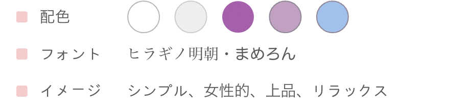 「働く女性」がターゲットでもあるため、等身大のような女性の写真を使用し、アクセントカラーも高〜中明度の紫色を使用しました。