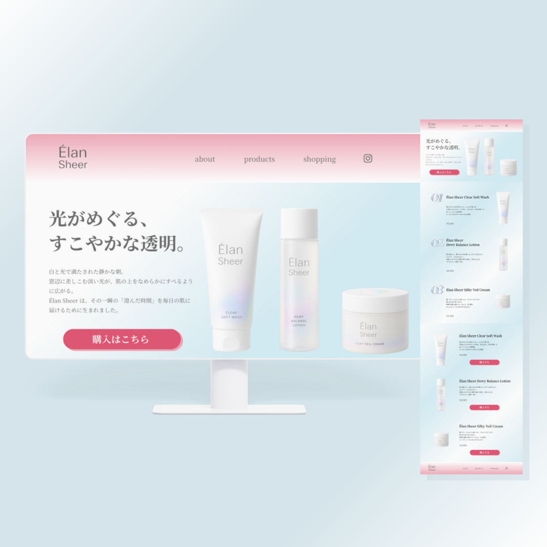 20代女性向けスキンケア化粧品 Élan Sheer(仮)新発売の販促用LPを制作しました。