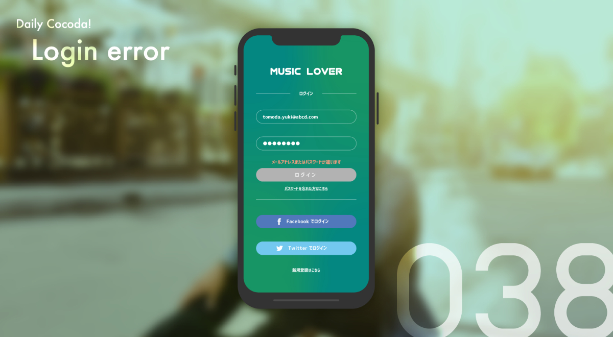 画面情報:パスワードミスなどで、エラーが出た際のログイン画面
