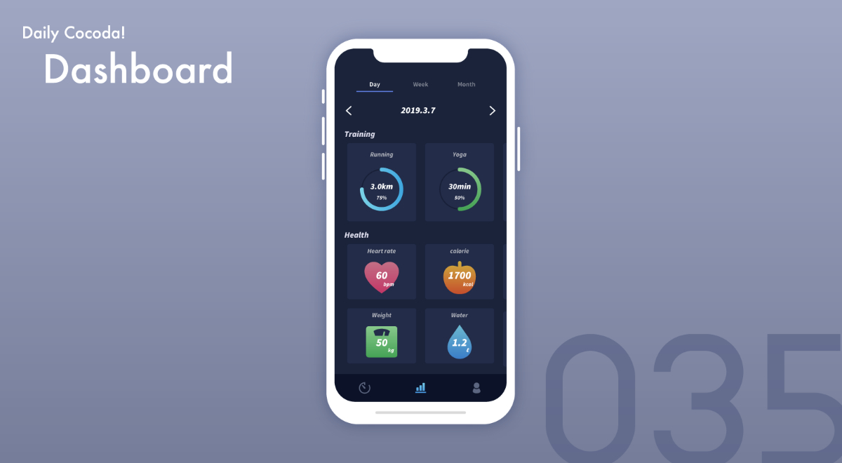 自分の記録したい項目、目標を設定してダッシュボードに表示できる仕様です。