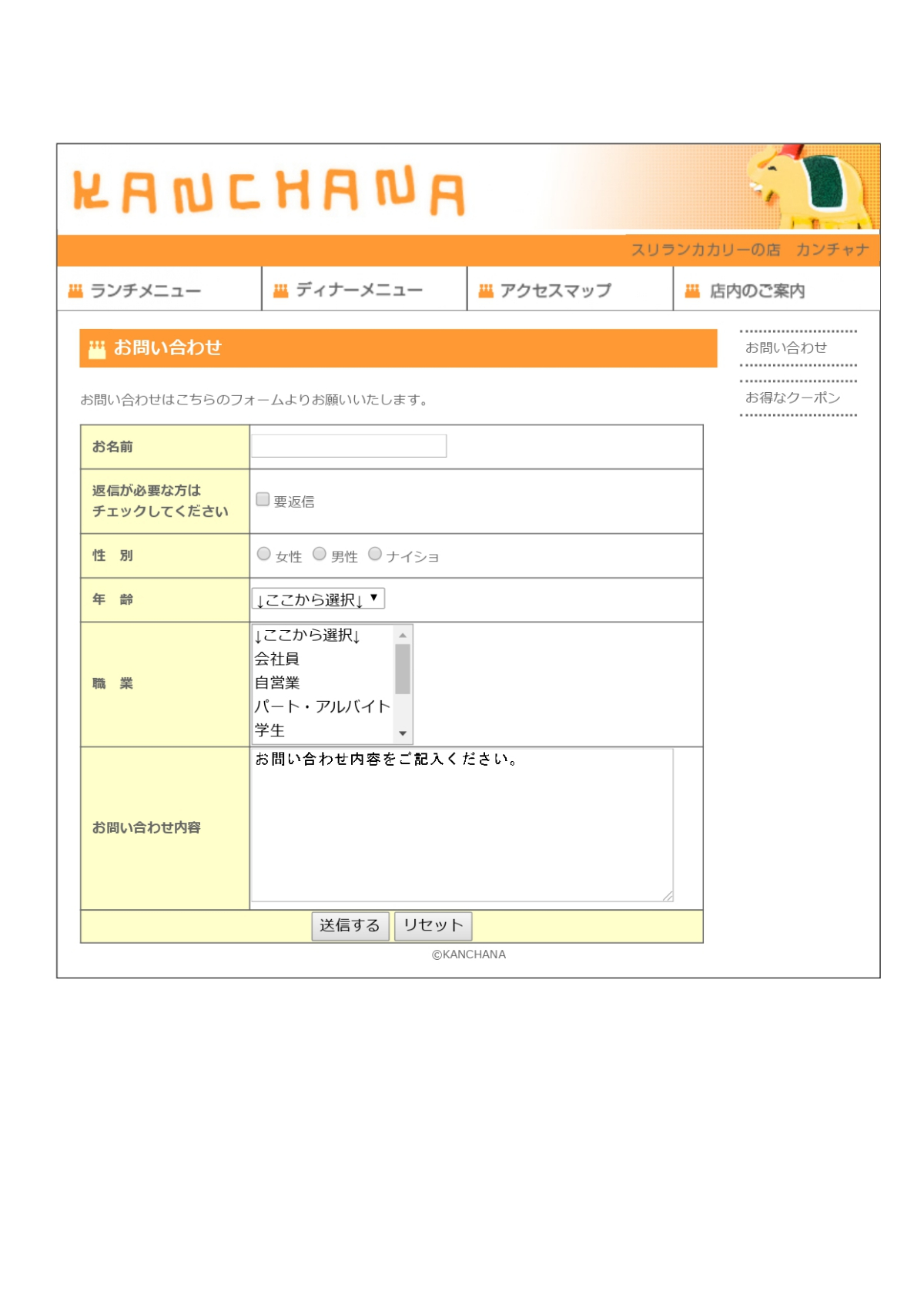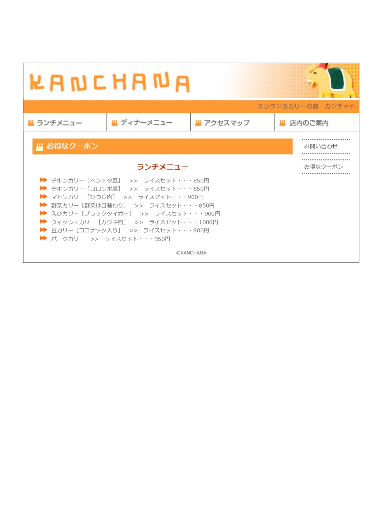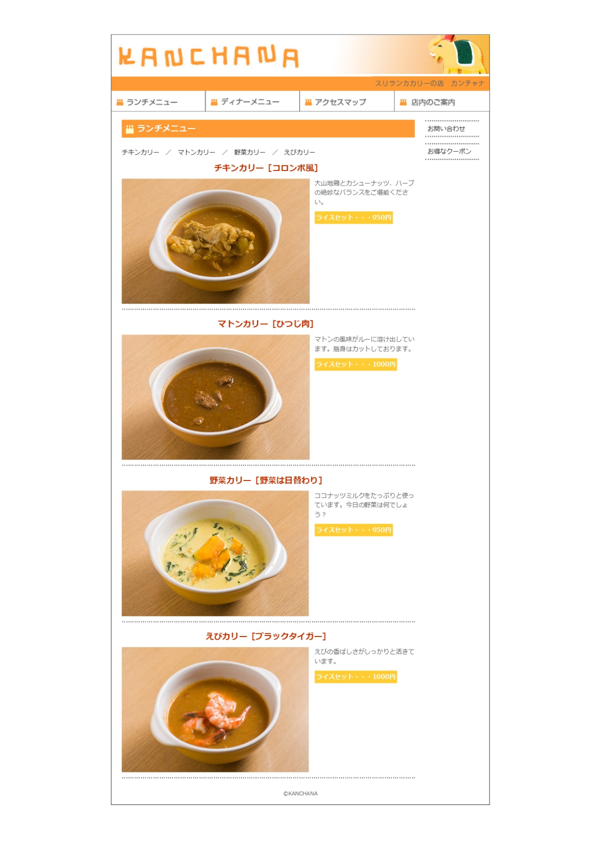 架空カレーショップのホームページです