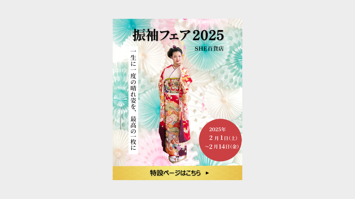 成人式を迎える女性とその家族に向けて、「振袖フェア2025」の開催を告知するためのバナーを制作しました。