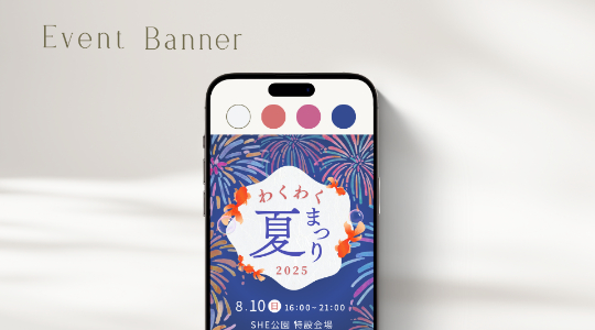 「家族みんなで」「参加費無料」など、参加意欲を高めるキーワードはタイトル周辺に集約し、視認性を高めることで、思わず「行きたい」と感じてもらえるよう工夫しています。