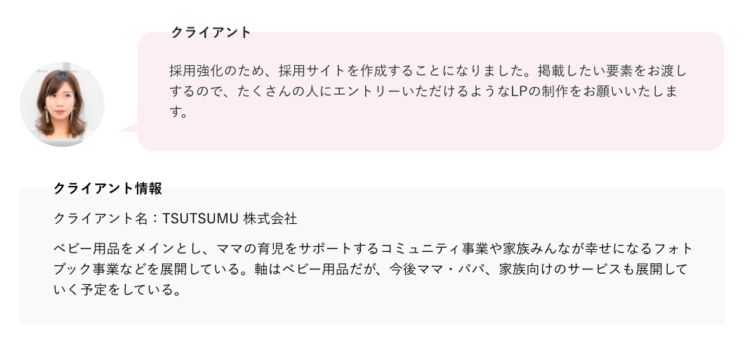 カルチャーマッチした人にエントリーいただくことをゴールに、LPの情報設計を考えました。小さいお子さんを育てながら働く女性といった、下記詳細なペルソナを設定した上でユーザーストーリーを設定しました。