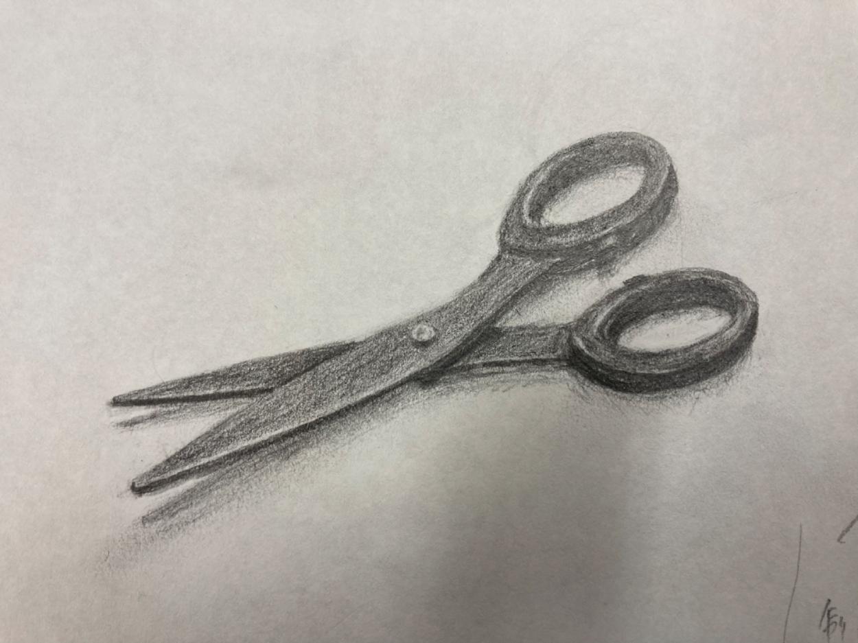 黒を意識して描き込みました。しかし陰影が少し分かりづらいので、次回は黒以外のハサミに挑戦しようと思います。