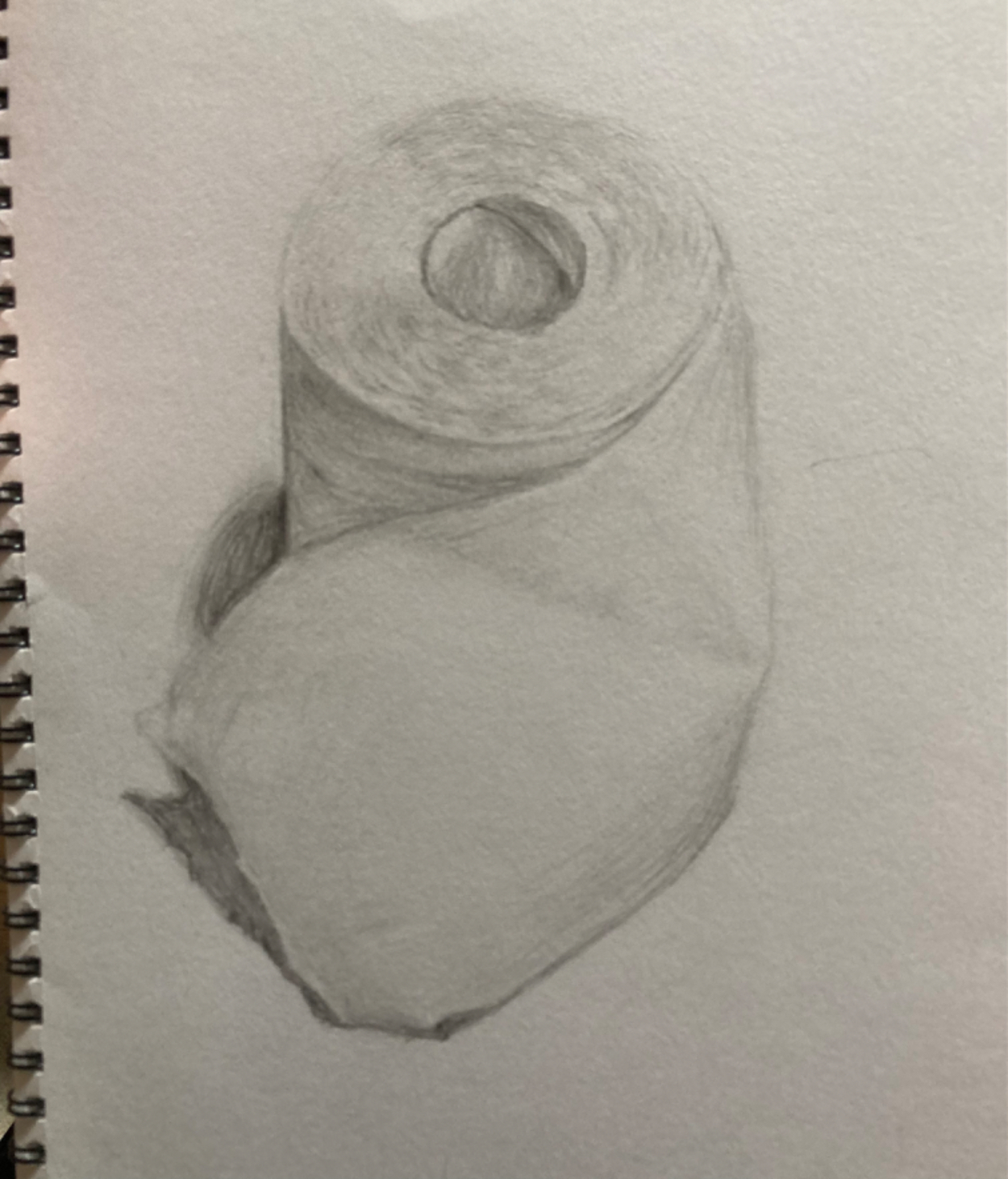 特にこだわり部分はトイレットペーパーが折れ曲がった部分の影です。1番影となる下部が内側に折れ曲がった際の影のつき方もよく観察しながら描きました。
