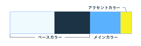 文字色に使用しているダークネイビーと、メインカラーのブルーを薄めた色味をベースカラーとして使用し、全体に統一感を持たせました。 - メインカラー:ブルー