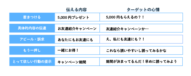 ①SNSをさっと見ている時に、1番目立つ「5,000円プレゼント」を見せて興味を惹かせる