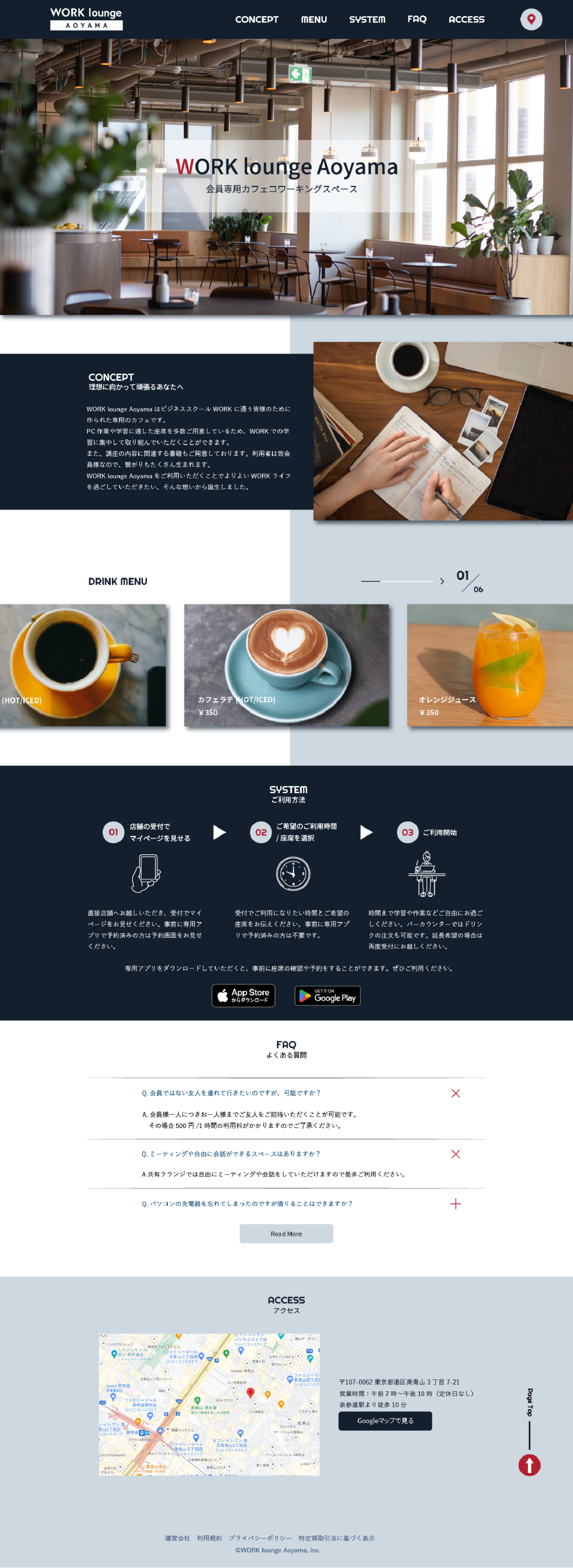 【SHE likes MULTI CREATER COURSE課題】会員限定コワーキングスペースの案内を行うLPを架空案件としてデザインカンプまで制作しました。