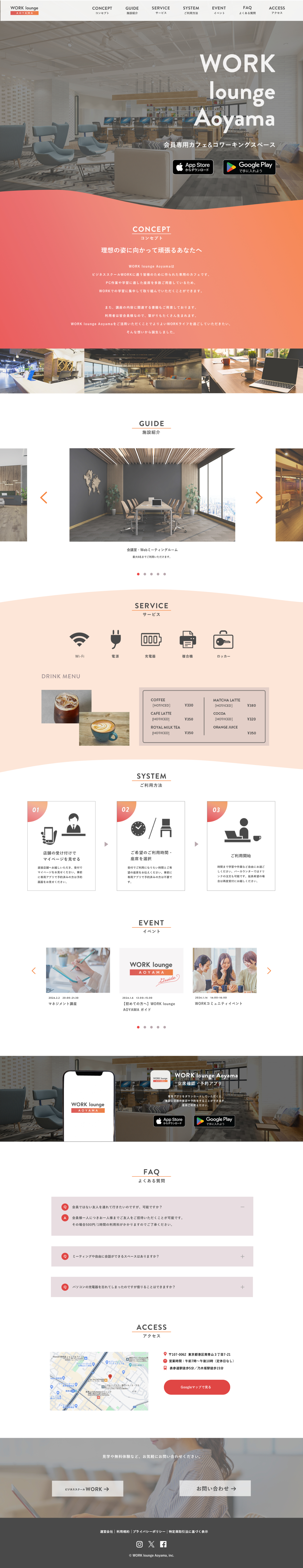 ・施設紹介 ーWORK lounge Aoyamaに訪れたことがない人にとってどんな施設なのかを知ってもらうために、場所としての魅力を知ってもらう狙いで追加しました。