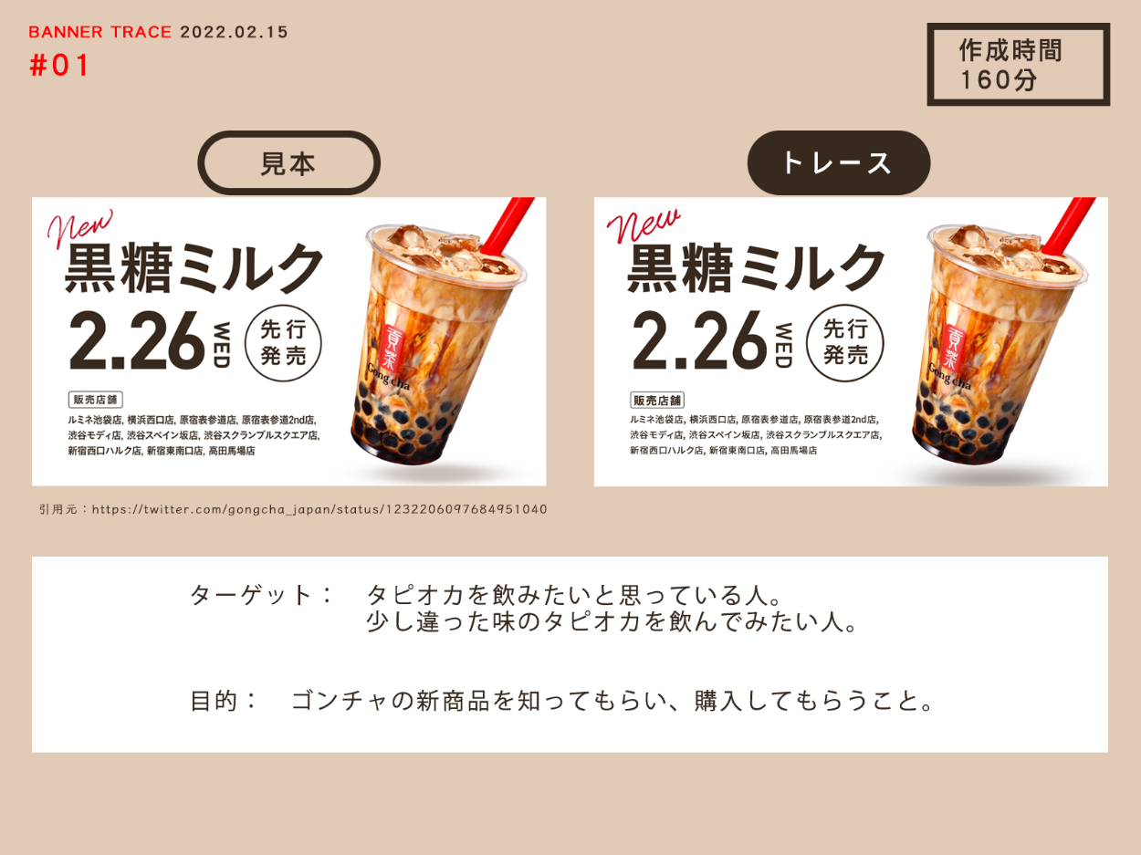 ①トレースしたバナーと、そのターゲット・目的