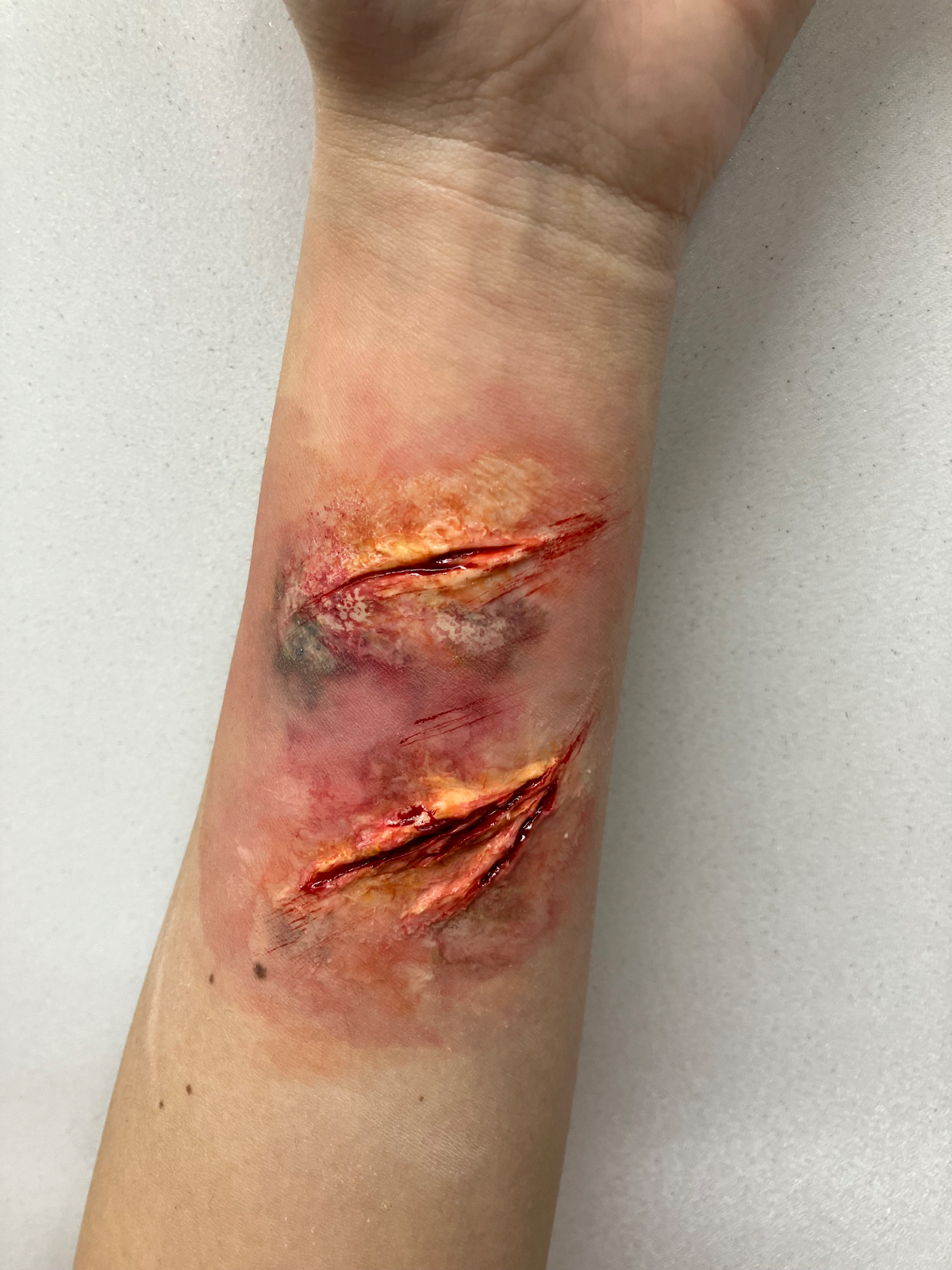 シリコンパテA B材にて傷メイクをしました。