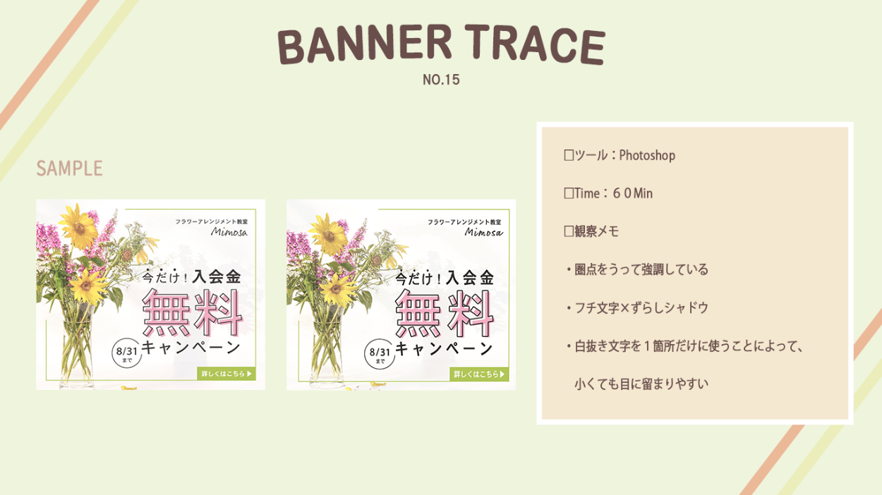 【バナートレース】|デザインのドリル chiaki アクセサリーSHOPのECサイト運営業務 OVERVIEW デザインのドリルのバナートレース □デザインのドリル06□デザインのドリル14□デザインのドリル15□デザインのドリル18□デザインのドリル19□デザインのドリル20□デザインのドリル22