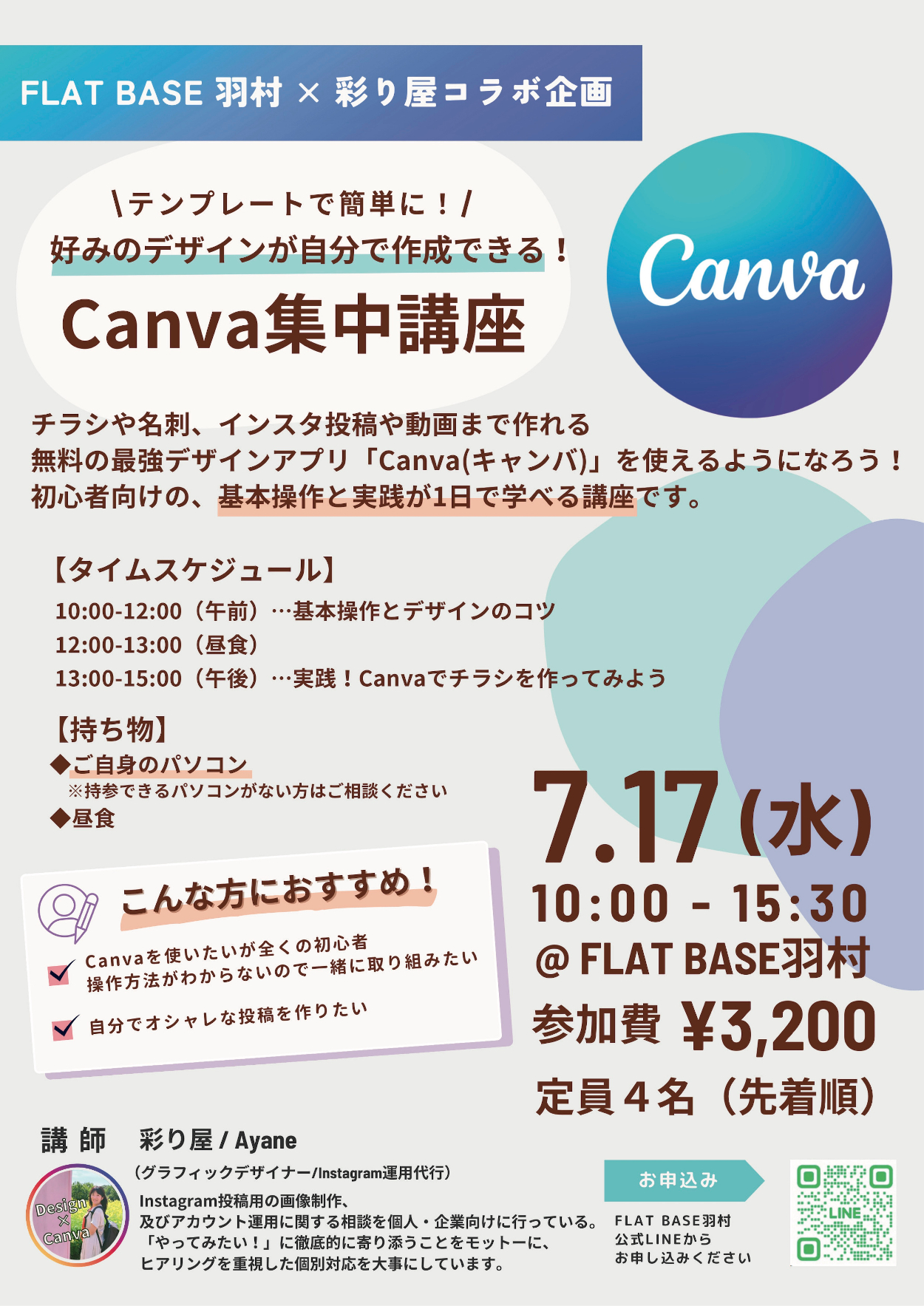 ・Canvaの基本操作ができる方向け、作業効率を考えて、PCの持参を推奨しています。