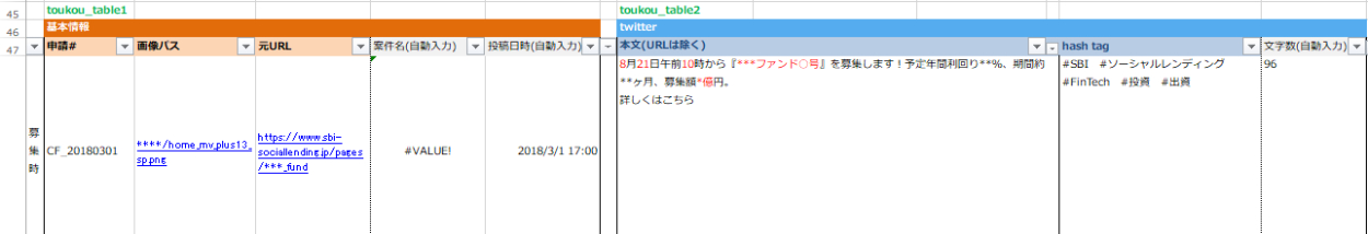 投稿内容をテーブルに書いておく