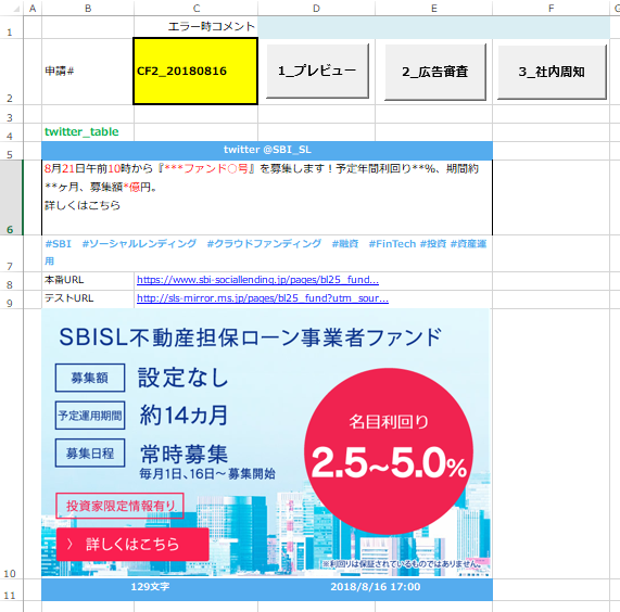 - SNSの投稿も同時に審査していたが、下書き機能みたいなのがなかったので、投稿直前の画面をスクショして貼っていた。