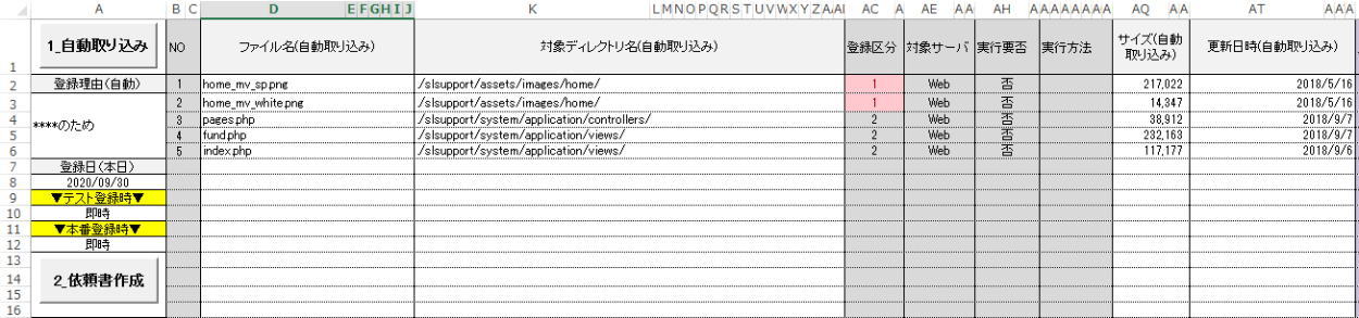 - 「自動取り込み」でフォルダパス指定すると、ファイル名やサイズなどを自動取り込み
