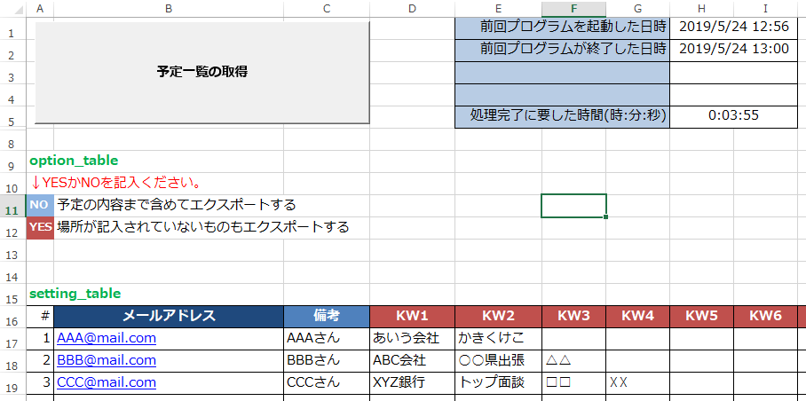 - 対象のカレンダー情報(タイトル/日時/場所 etc)を全てCSVに落とす