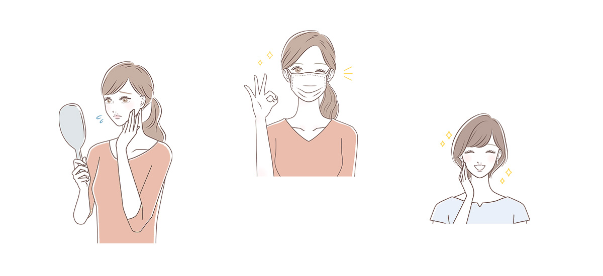 SHEbeauty様のイメージする女性像に合うような、大人の女性らしさを感じる繊細な線のイラストを使用しました。テーマが表情筋に関する話題のため、表情がよく分かるようにバストアップのイラストをメインにしています。