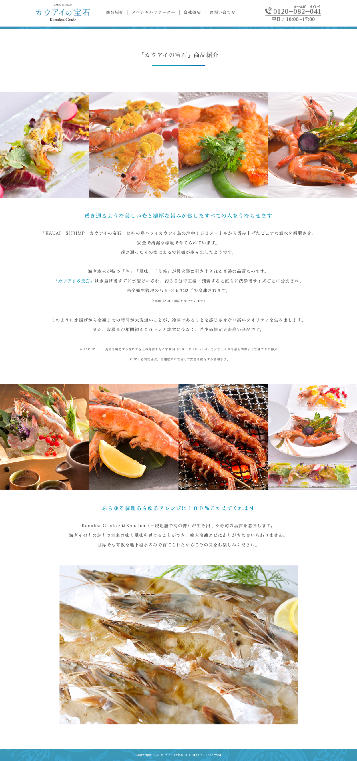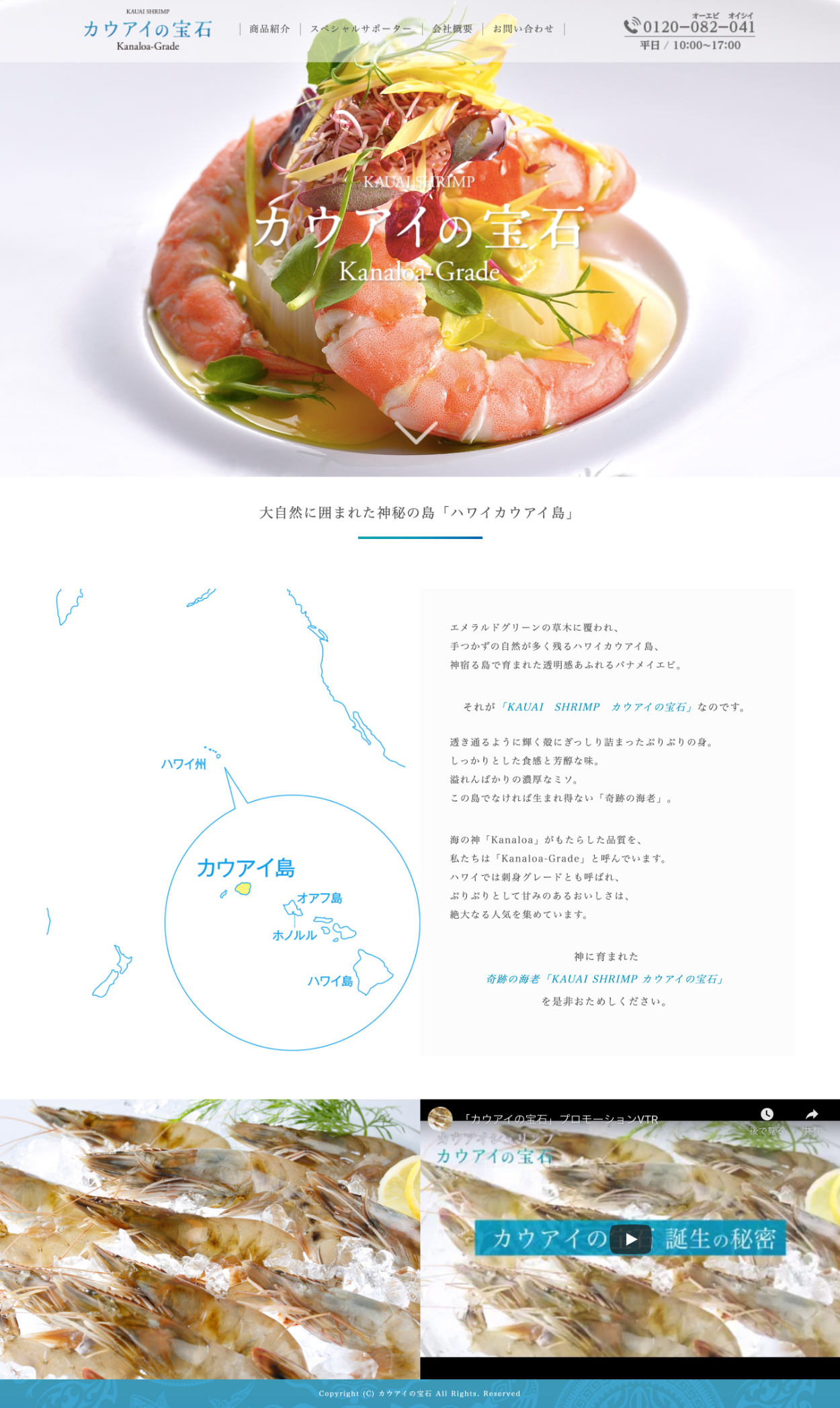 ハワイカウアイ島で育てられた「KAUAI SHRIMP カウアイの宝石」を販売する会社のwebサイトを制作しました。