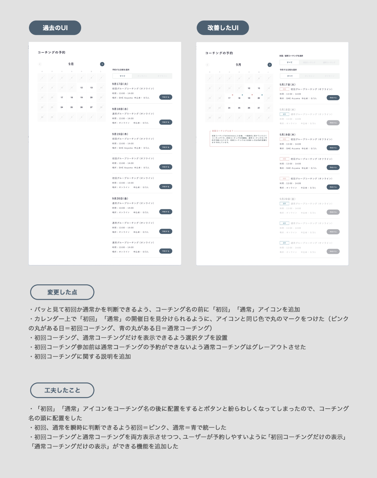 SHElikesのUIUXコースにて「すでにあるUIの使いづらいところを改善してみよう」の課題に取り組みました。