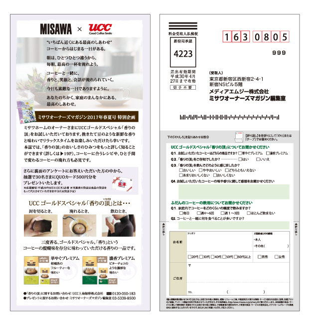ミサワホームとUCCがコラボして行ったコーヒーの販促リーフレットです。 オーナーズマガジンと同梱で配布されました。
