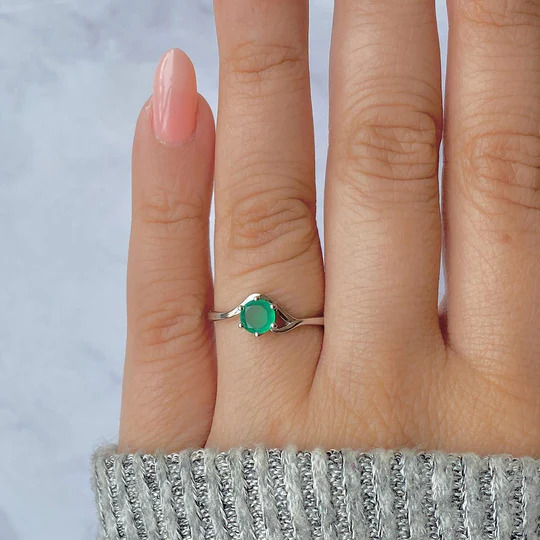 Adorn your finger with timeless elegance and natural beauty with this dainty green onyx ring . The rich green hue of the green onyx stone represents balance & energy, while the delicate crystal band adds a touch of understated sophistication. Whether adorned with modern attire or a traditional look, this ring is a graceful expression of style and grace.