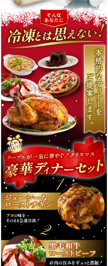 解凍するだけで食べられる、クリスマスディナーのLPを制作しました。