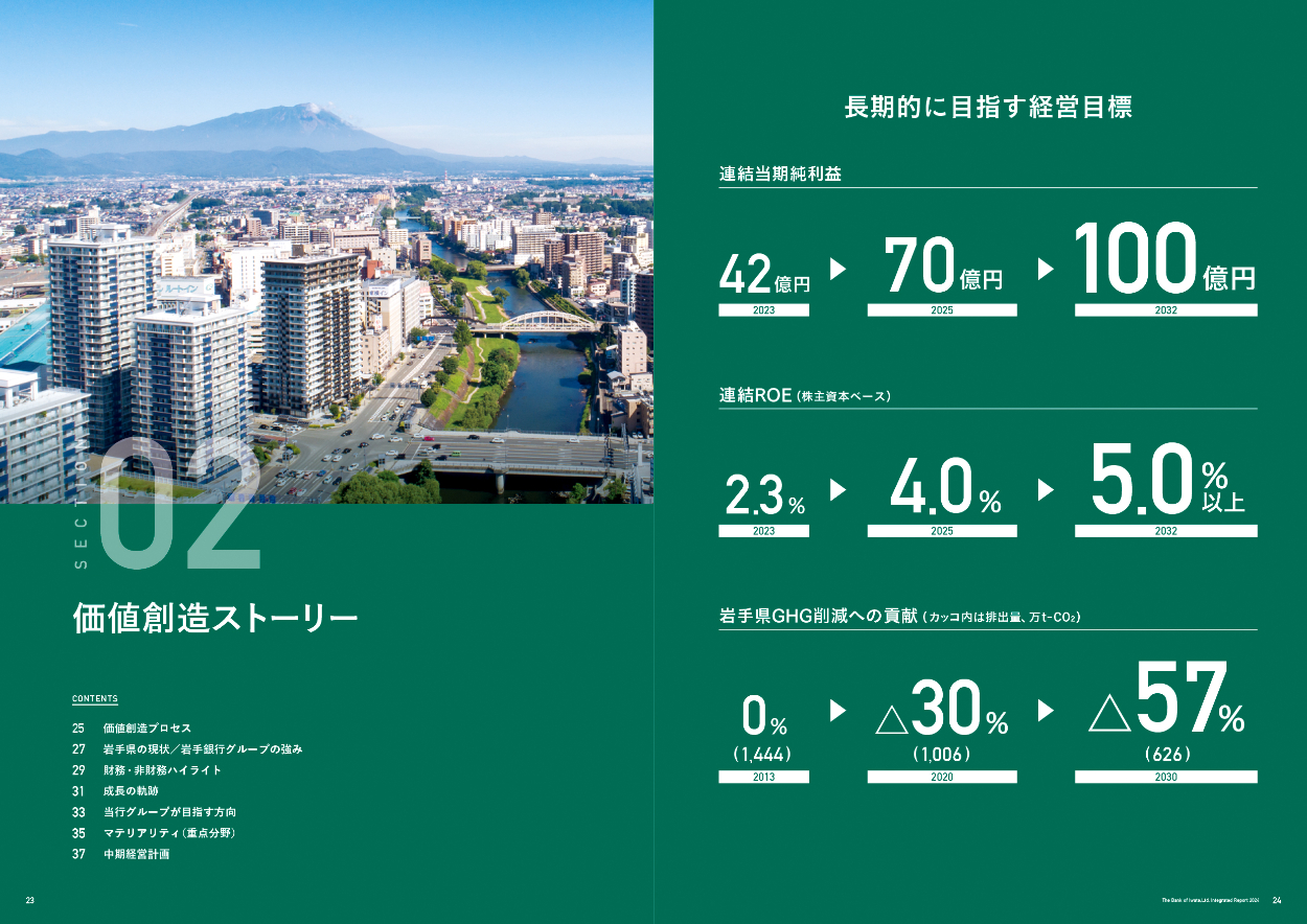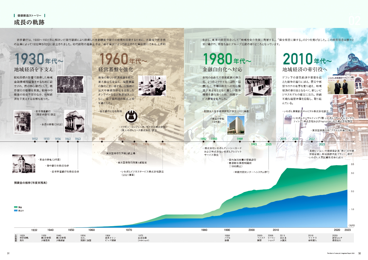 地域に根付いた銀行の伝統と信頼感が伝わるデザインにしました。情報量が非常に多いため、メイン写真を大きめに入れ、アクセントの数字を入れるなど、飽きずに読める工夫をしました。グリーンはコーポレートカラー。