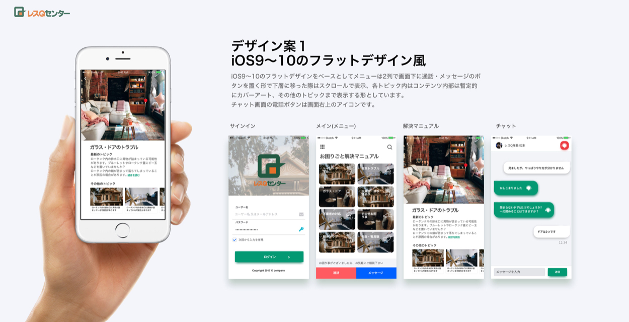 Ios9〜10のフラットデザインをベースとしている。 メニューは2列で画面下に 通話メッセージのボタンを置く形で下層に移った際はスクロールで表示、各ピック内は暫定的にカバーアート、その他トピッ クまで表示する形としている。
