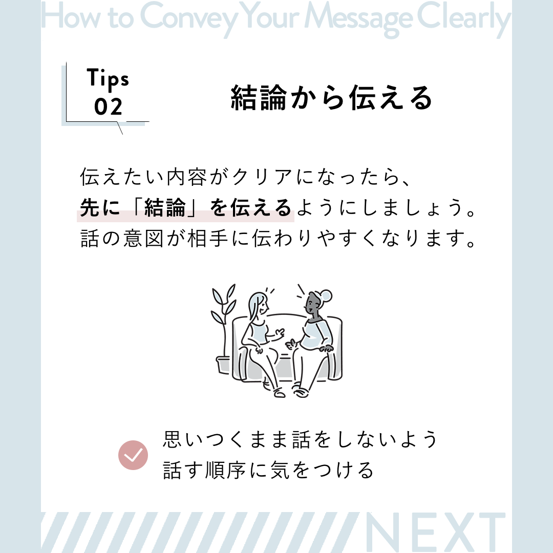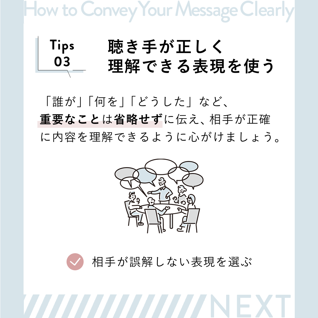 - 簡単に実行が可能で、一貫して聴き手の立場に立って欲しい旨を伝える内容