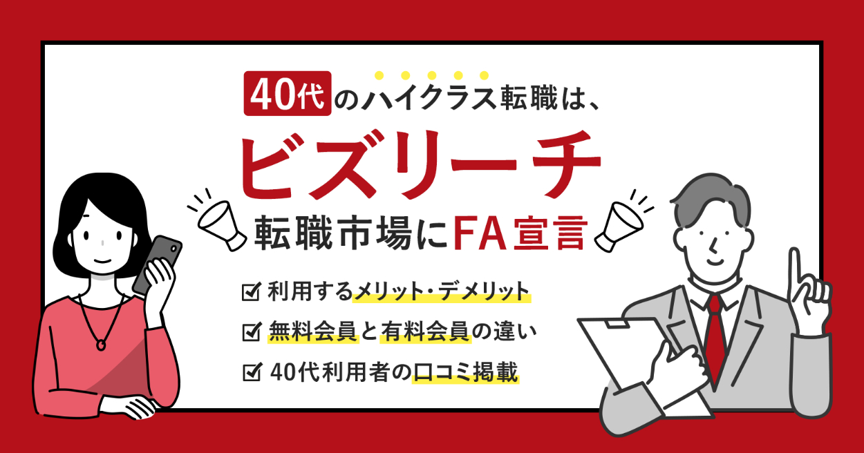 参考記事の内容から「40代 ビズリーチ」の他に「FA宣言」もこの記事において重要になると考え、強調しました。チェックリストの部分は読者の目を引くようなキーワードを抽出して強調しました。
