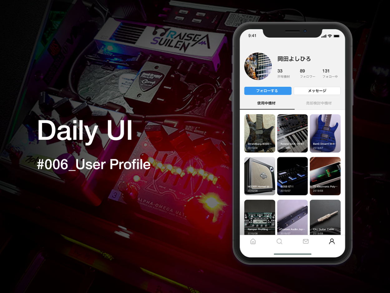 UIデザインのクオリティアップのために、毎日お題に沿ってUIデザインを1つ作ることにした。個々のパーツの作り込みやビジュアル面での強化、レイアウトやデザインのスピードは迷わなくなったが、UIデザインをする上で大切な他画面との繋がりを課題で得られることができず、目的は達成した感じ10個ほど課題を完了し中断。