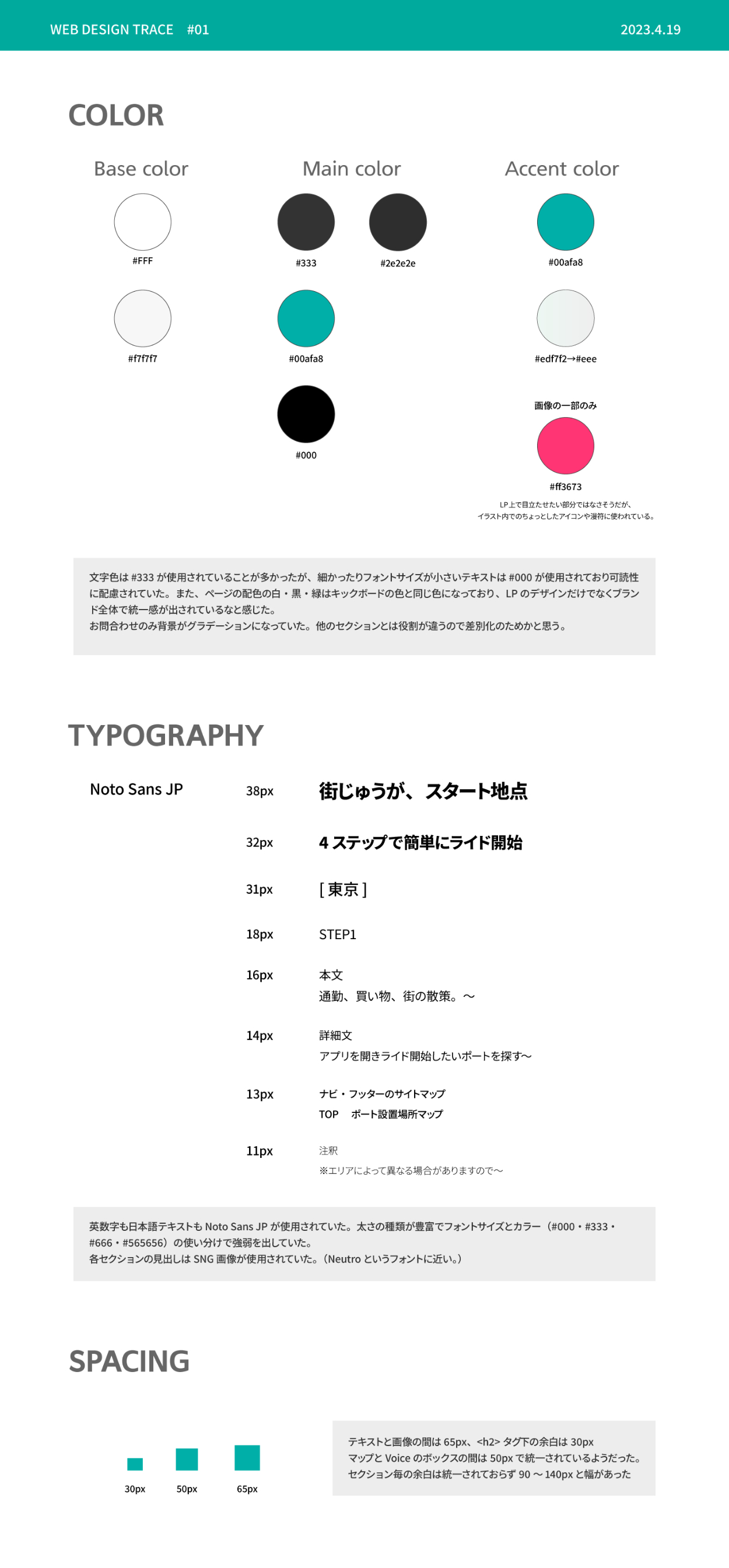 LPが商材(電動アシスト自転車、キックボード)と同じ色でデザインされているためLPのみだけでなくブランド全体での統一感が出ており、ユーザーへの印象付けがされているなと感じました。デザインをする際LPのみではなく、ブランド全体での統一感を考えることも大事だと学ぶことができました。