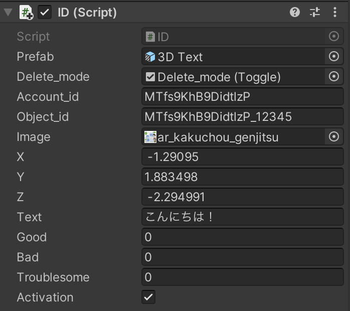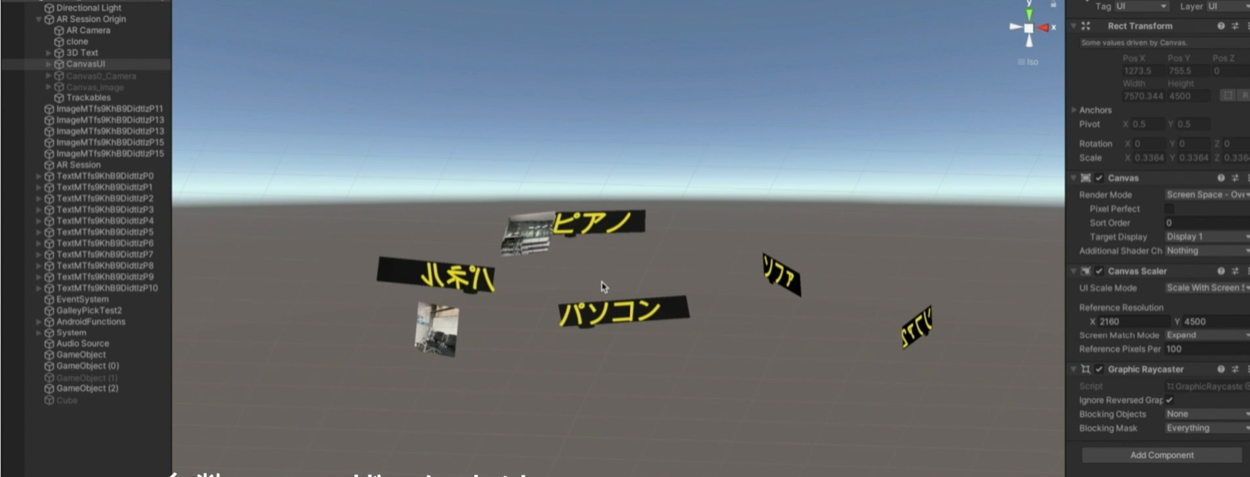 ※ ユーザが画像やテキストを変更する時は親オブジェクトを変更しています。親オブジェクトをInstanciate()関数により複製し、AR空間に出現させています。