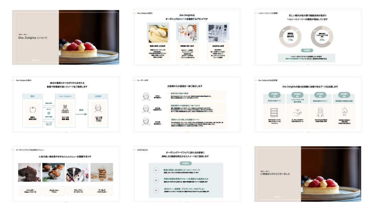 【架空のサービス】スライドデザイン fufumi_ OVERVIEW *スライドデザインコース Lesson3 STEP3 ワークより作成 YEAR 2024 ・作成時期:2024/01・使用ツール:Googleスライド・枚数:9枚