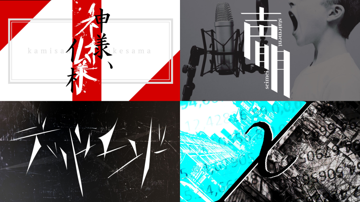 最初は「モノクロにしてもいい感じに見えるロゴ」を目標に、その日のランダムに選んだ言葉とテーマに沿って制作していました。途中から路線を変更し、自分の好きな曲をテーマにロゴを制作し、そのロゴに合うようなビジュアルを作るように変更しました。
