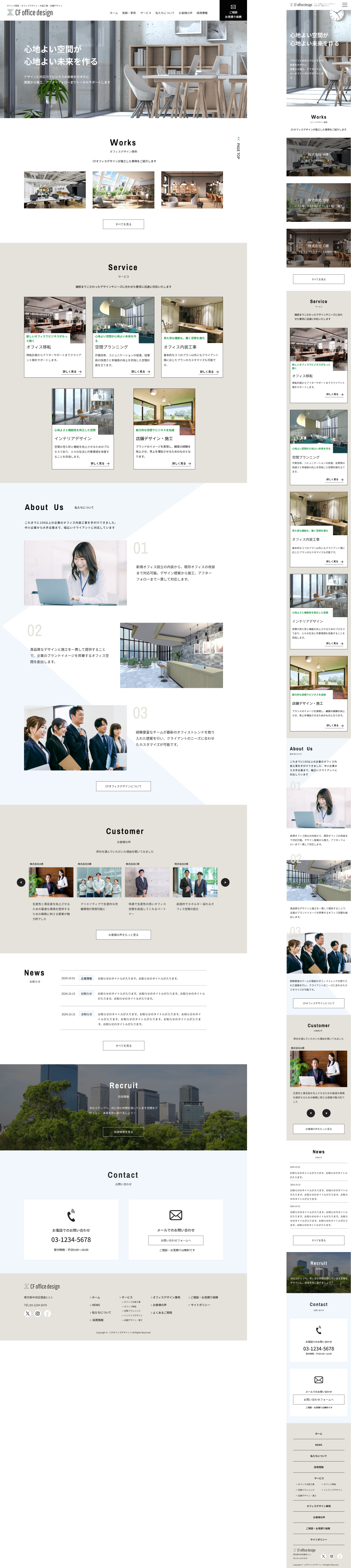 * 見やすくてプロフェッショナルな印象が感じられると嬉しいというご提案があったので、全体的にシンプルなイメージに仕上げました。・「オフィスデザイン事例」においてはフィルターをかけて希望する事例にたどり着けやすいようなデザインにしました。