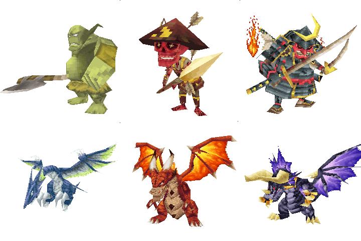 2010年前後に普及された携帯端末フューチャーフォンで複数体のキャラクターが表示されても、動作が重く不安定にならないように、極端にポリゴン数を抑えた仕様となっています。