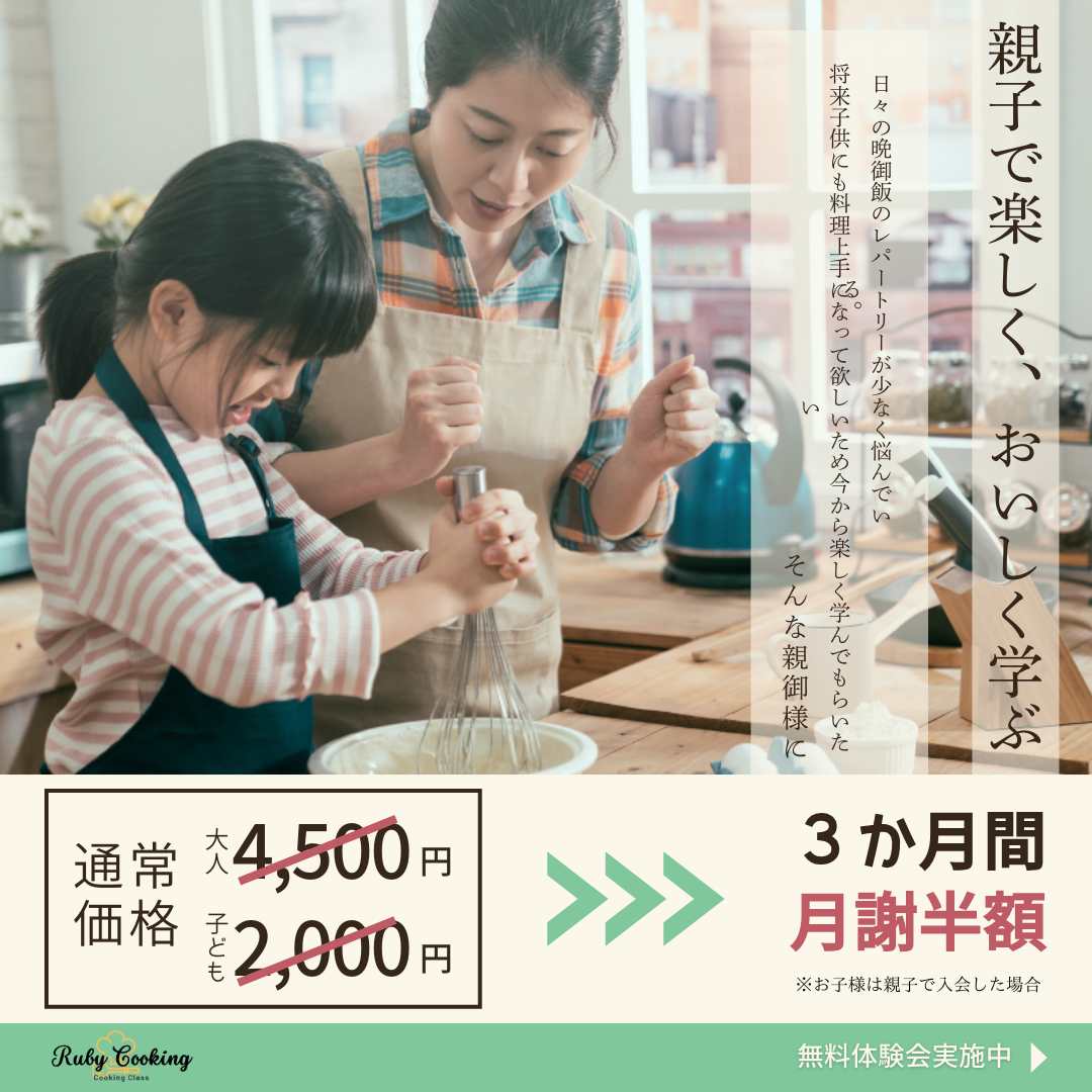 【詳細】架空の親子料理教室の無料体験会誘導バナー。