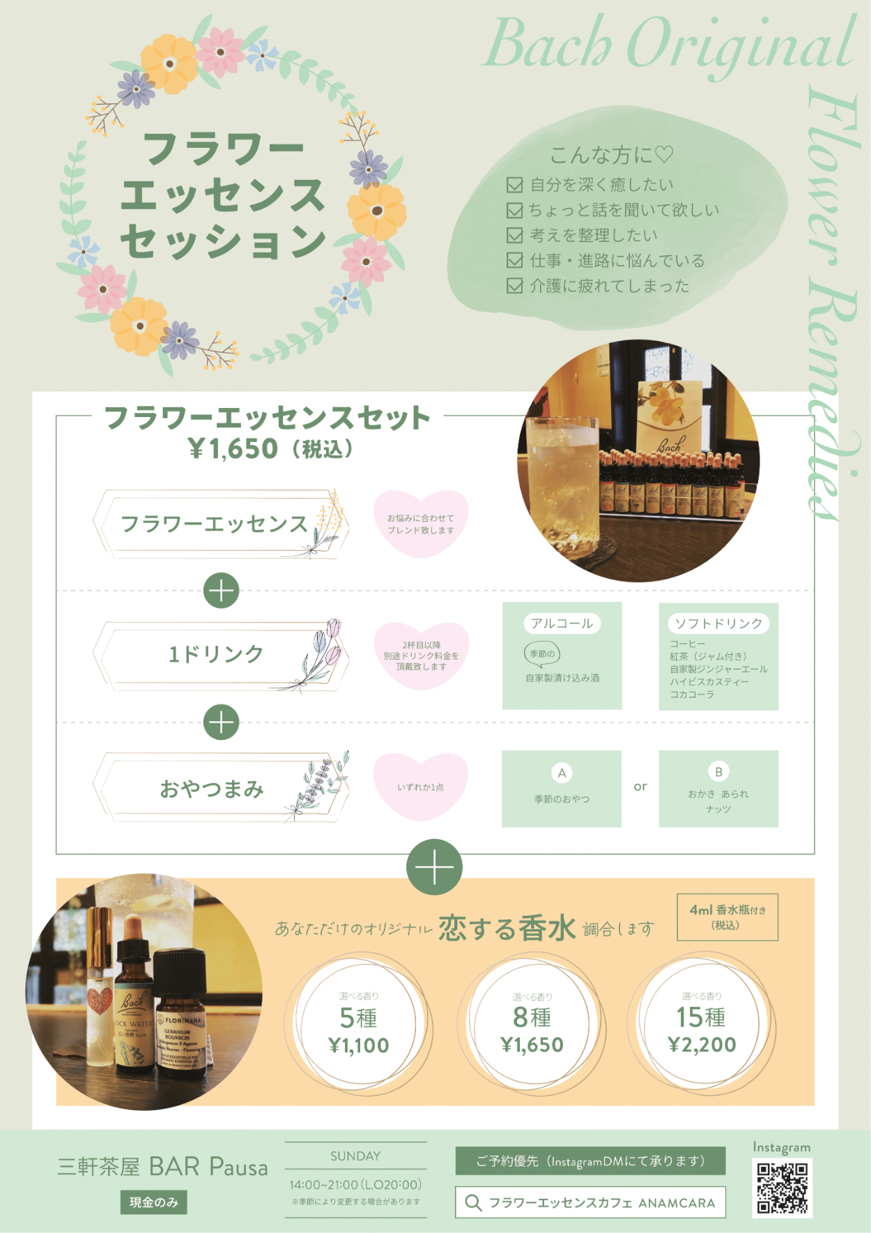 現役看護師の店長が、フラワーエッセンスを用いて自己理解と癒しの時間を提供する、カフェ&バー。