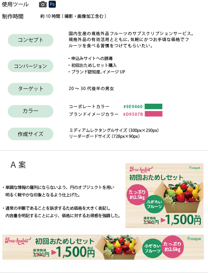 「果物のサブスク Fru-habit 」バナー広告(架空のサービス)