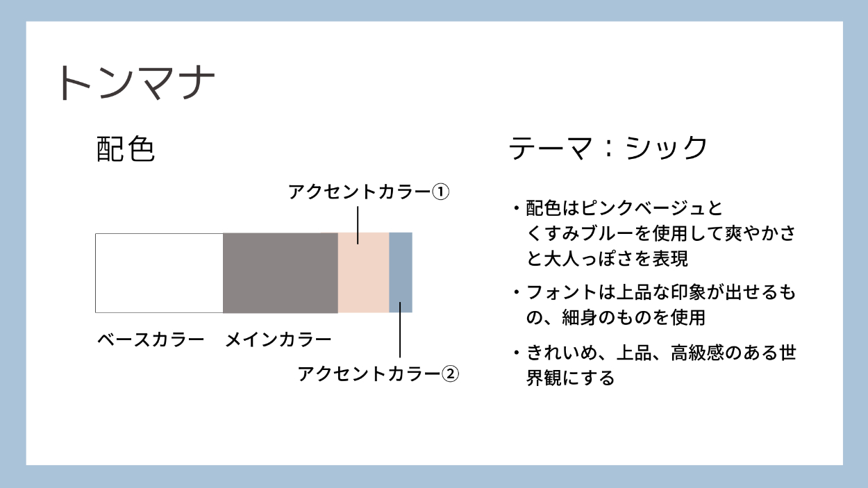 ・トンマナ/ペルソナ設計の際にテーマを設定しておくと、その後の情報設計とデザイン構成作業がスムーズに進む