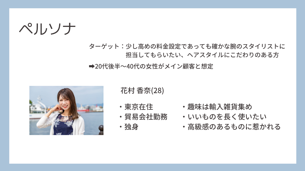 美容室のターゲット像からペルソナ像を作成しトンマナ設定