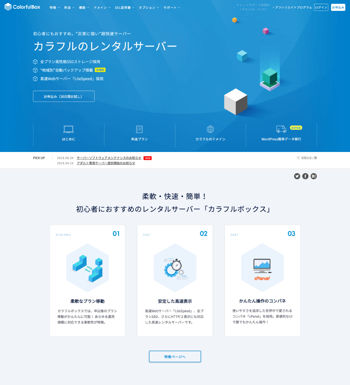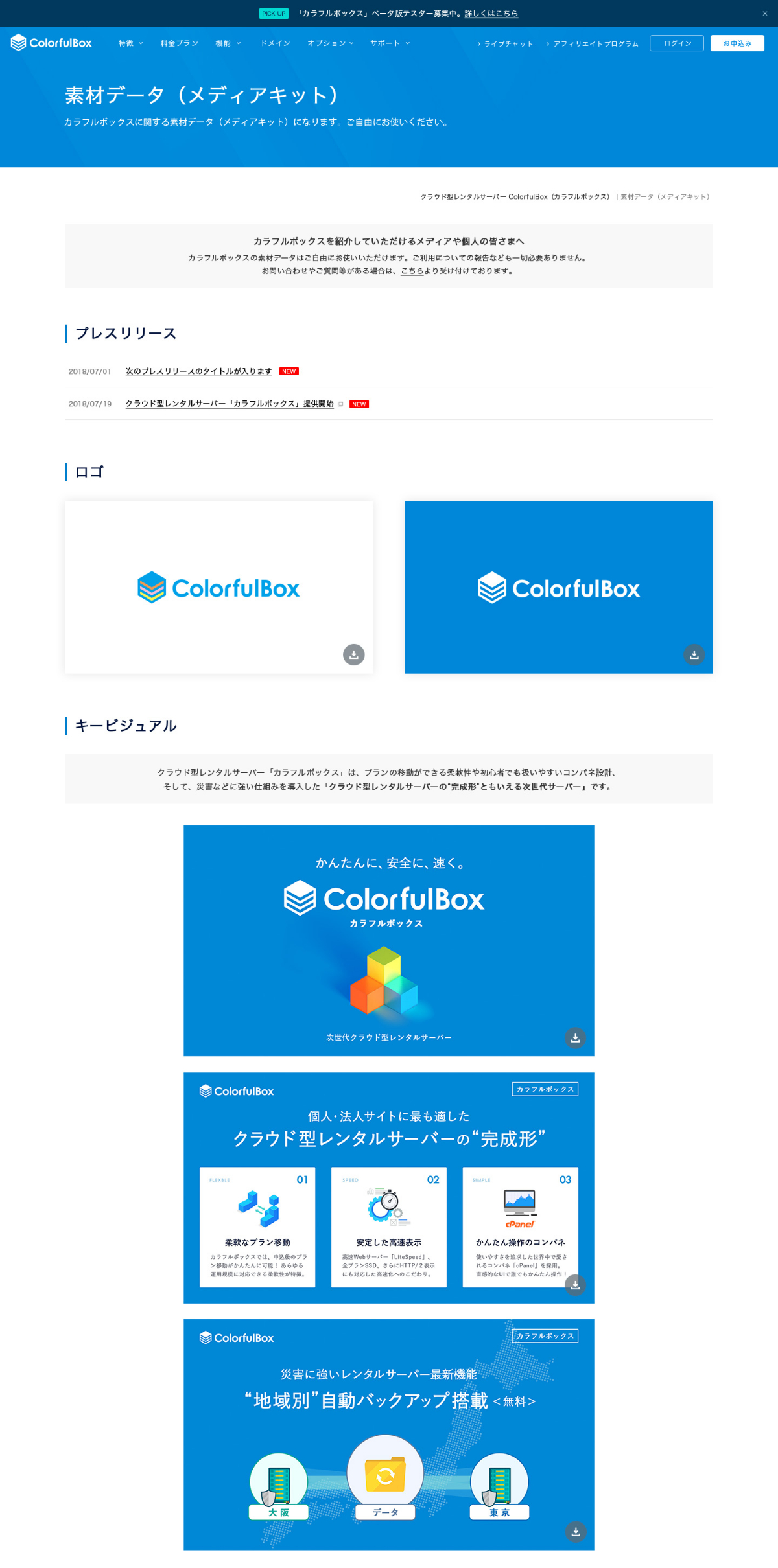 2. Webサイト制作(OEM提供レンタルサーバーサービス) Kohei Sakamoto デザイナー OEM提供の新規レンタルサーバーサービス「カラフルボックス」のすべてのデザインを担当。 WEBSITE