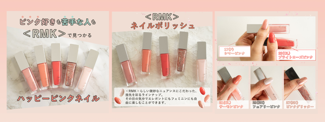 - ネイルポリッシュの発色を伝えるために、あしらいとして爪の画像を使用しました。