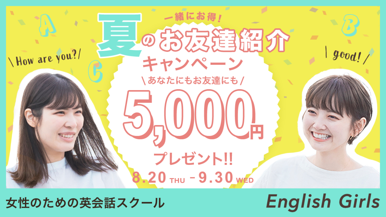 <文言>①夏のお友達紹介キャンペーン ②あなたにもお友達にも5,000円プレゼント