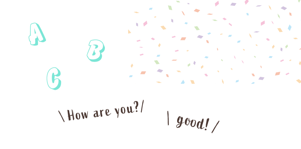 - 使用した写真が「友達紹介キャンペーン」は表現できましたが、英会話スクールということが伝わりにくかったため、あしらいで「英会話スクール感」を表現しました。英語を会話しているような手書きの文字を入れ、親しみやすいアルファベットの装飾で、初心者向けの英会話スクール感を表現しました。さらに紙吹雪で楽しさを表現しました。