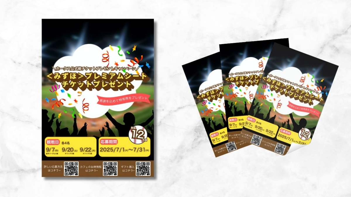 企画の目玉である“野球のチケットが当たる”という情報が一目で伝わるよう、野球ボールのビジュアルを大きく配置し、視認性を高めました。